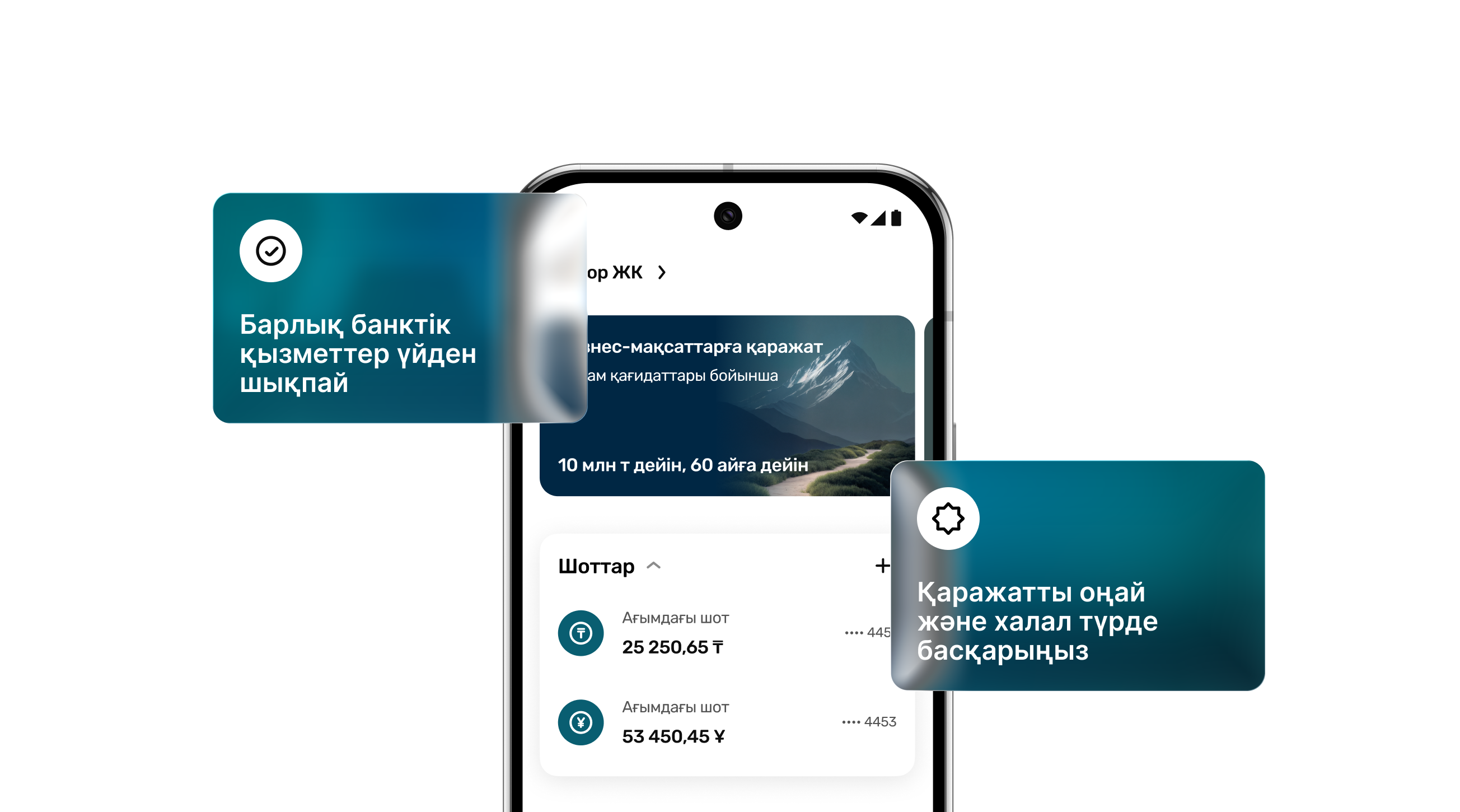 Сіз біздің өнімдерді дінге қарамастан пайдалана аласыз. Ислам банкингі - бұл клиенттің діні туралы емес, принциптер туралы: адалдық, ашықтық және құрмет. Біз пайыздарды (риба) алмаймыз, жасырын шарттарды қолданбаймыз және күмәнді салаларға инвестиция салмаймыз. Біздің барлық шешімдеріміз нақты экономикаға, әділ серіктестікке және сенімге негізделген.